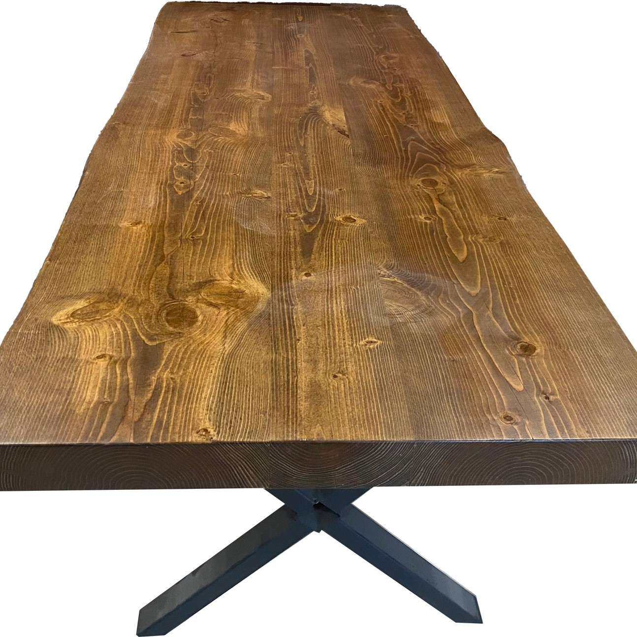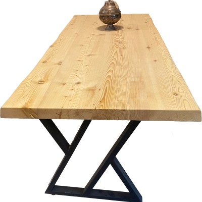 Doğal Ceviz ahşap kalaslardan bünyemizde imal edilmektedir. İsteğe göre renklendirilir ve üst yüzeyine mat cila atılır. Ayak olarak ahşap ve demir profil. Fırın boyalı ayak seçeneklerimiz mevcuttur.